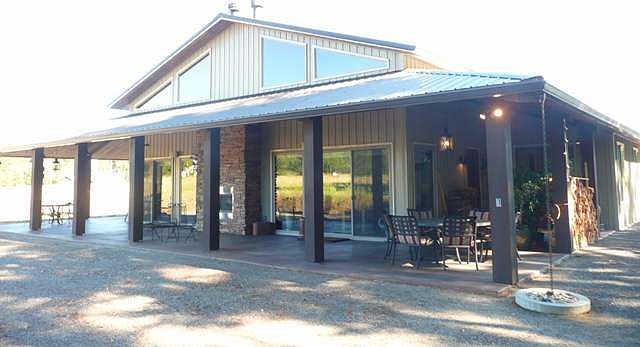 Live on one level in the country. Built in 2007,over 2600 sq.ft. of living space,3 bedrooms,2 baths, huge outdoor covered areas with 2 sided wood burning rock fireplace, heated & stained concrete floors, central a/c, granite counters thru out, knotty alder millwork & 8 ft. doors. Attached garage/shop has 8ft. and 14 ft. tall doors and space for a 40 ft. RV or boat or lots of cars. Kitchen offers gas range, double ovens, huge eating island & beautiful cabinetry.Barn, large barley pasture & room f