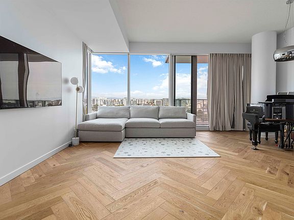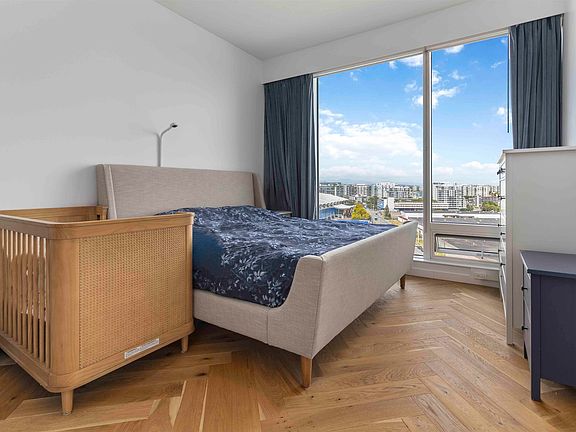 Rarely available PENTHOUSE at the prestigious River Green Phase 1 by ASPAC! This spacious 1,299 SF corner home offers 2 bedrooms + den, 2 bathrooms, soaring 10' ceilings, and breathtaking mountain & river views. Recently updated with stunning herringbone wood flooring, fresh paint, and brand new washer/dryer and dishwasher, it’s modern and move-in ready. Enjoy air conditioning, premium appliances, a large covered patio, plus 2 parking stalls and an oversized locker. Unbeatable location — steps to T&T, the Olympic Oval, riverfront trails, Canada Line, and more. This is a must-see! Open House Saturday Sunday 11th-12th 2pm-4pm DRPO Tuesday 14th 2pm.