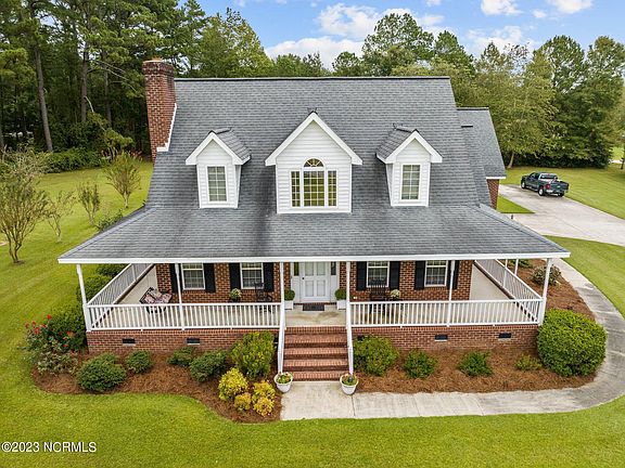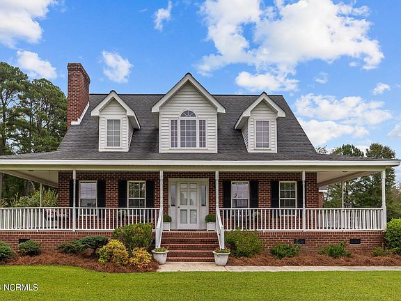 Motivated Seller! This well appointed, 3 bedroom, 2.5 bathroom brick home with wrap around front porch is located on 1.39 acres outside city limits in the SE portion of Pitt County. This home is full of southern charm, attended to with lots of care and love. Wonderful natural light. On the main level, you will find a welcoming great room, formal dining, spacious kitchen, with abundance of counter space and cabinets and a breakfast nook. The primary bedroom and en suite bath are also located on the main floor in addition to a 1/2 bath, mudroom and a large and functional laundry room. Upstairs you will find 2 bedrooms, 1 full bath, walk in attic space and a large finished bonus room above the garage. This home has a spacious attached 2 car garage, plenty of parking space turn around space, a wired detached workshop with extra electrical amps with a entrance door and a garage door opening. Additional storage in back for lawn equipment. Beautiful deck sheltered from the late afternoon sun and a well manicured lawn. Recently installed French Drain with sump pump.