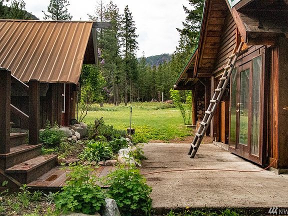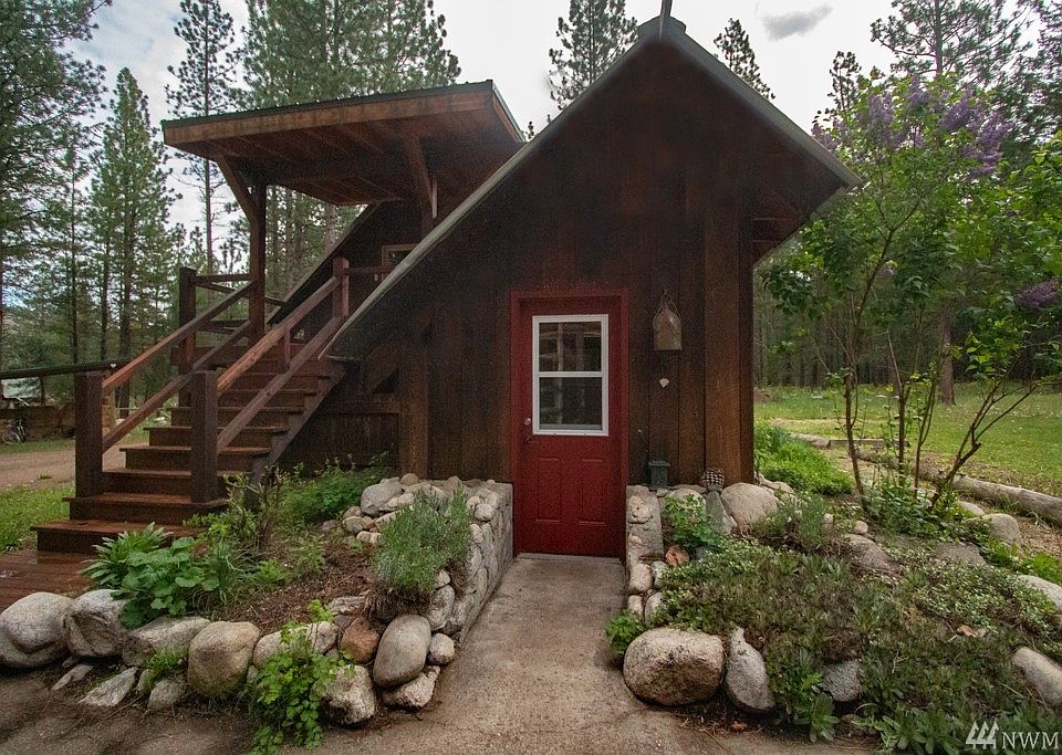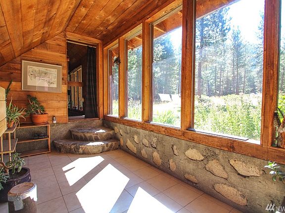 Delightful off-grid cabin with over 300' of river frontage ready for your homesteading dreams or build out to your personal retreat - power easement in place. Perfectly situated for both summer and winter sun, and lightly treed for plenty of privacy. The partially earth-sheltered cabin with walls of south-facing windows is designed for efficiency. Sunken kitchen and living area with loft sleeping area and a fabulous covered porch. Separate bath house. Carport, shop, and other outbuildings.