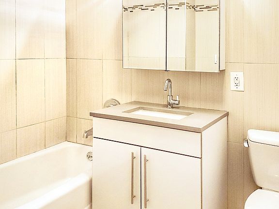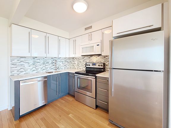 This wonderful 1 bedroom unit features a modern open kitchen with lacquer cabinets and quartz composite counter tops, equipped with whirlpool stainless steel appliances. Unit offers plenty of closet space and has hardwood floors throughout the apartment. Bathroom is equipped with high efficiency Toto toilets and Kohler fixtures. Bedroom fits a king size bed and has a semi walk-in closet. Unit faces South with plenty of natural sunlight throughout the day. Building amenities include a landscaped roof deck, 24 hour laundry room, free bicycle storage, virtual doorman. Building is wired for Verizon Fios and Spectrum. Heat + Hot water included Sorry, No pets EMAIL / MESSAGE THRU LISTING FOR ALL INQUIRIES