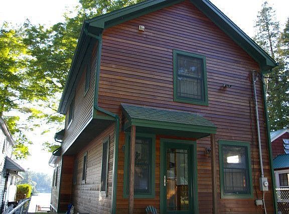 OUTSTANDING like new construction in the very popular Cleverdale area. This level lot w/ lakefront overlooking the Happy Islands has wonderful, quiet, calm waters as a backdrop for this beautiful, magnificent , open-floor plan that boasts soaring cathedral ceilings & all wood construction. Enjoy sunsets from the glass enclosed porch or dock w/ boathouse. Full 10' ceiling basement