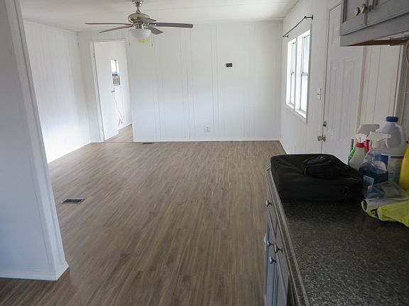 This is a singlewide mobile that has been remodeled inside & outside, new paint, new floor, new counter top, hook-up for washer & dryer, good sized kitchen w/pantry for extra storage. Great view from 19x9 front porch w/extended 6x8 porch plus 9x16 part covered porch on back. Located at end of Drive. A great, well kept Mobile Home retirement park to retire, close in to shopping and medical centers, Tenant must be 55+ small dog ok Park rent is $225 per month including mowing, water& sewer and road maintenance.
