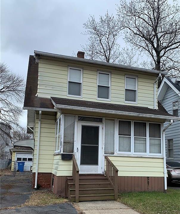 Attention investors! This 3 bedroom, 1 1/2 bath home has great bones, but will need to be completely renovated. 2 car garage, fenced in yard, enclosed front porch. New oil tank in basement. There is an underground tank still in the yard that has not been used. Ceiling damage in one bedroom from an old roof leak. There was a finished room in basement with half bath. Heating system needs repairs. House to be sold in "as in" condition.