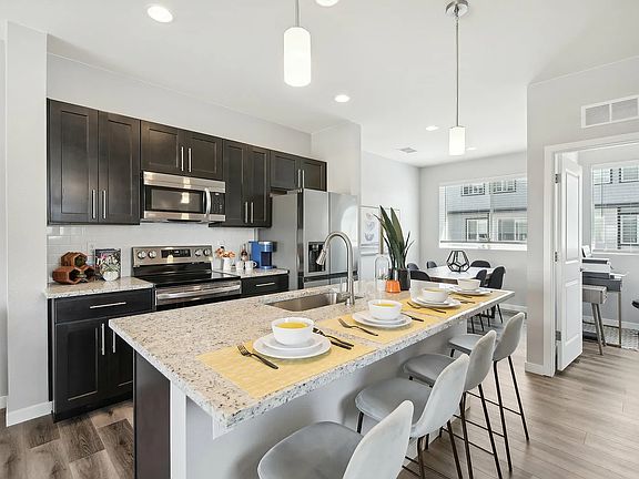 With 4 bedrooms, 3 baths, and a 2-car garage, this home at 1280-sq.-ft. has a large kitchen island, Classically styled with modern amenities, the homes at Greyhound Park features front porches, and elegant landscaping, laundry rooms (including washer and dryer) and a stainless steel appliance package all standard. Enjoy outdoor amenity spaces including a basketball court, sand volleyball court, ping pong table, walking path, and plenty of room for other outdoor activities. Pets are welcome. Residents responsible for all utilities in addition to rent. HOA rules apply