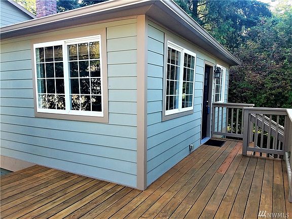 Move right in! Beautiful 2 bed/2 bath home! Main level features brand new hardwood floors, fresh paint, and propane stove. Kitchen includes stainless appliances, solid wood cabinetry, custom breakfast bar, and granite counters. Private Master Suite has vaulted ceilings, tiled Master Bath, custom walk-in closet and large covered deck. Den on the lower level with access to patio space and gardens. Insulated workshop/artist studio and carport. Gorgeous waterfront park and beach minutes away!