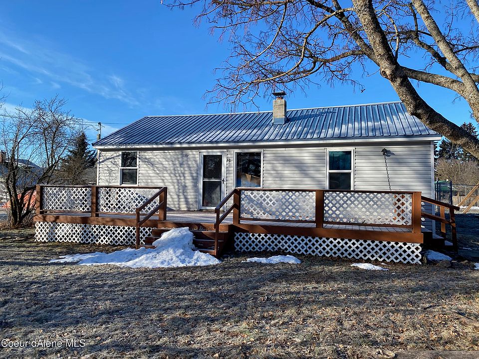Cute starter home in town, with custom knotty pine cabinets, hardwood floors, beautiful large front deck, fenced back yard with back deck. Enjoy your North Idaho evenings sitting on the deck. Large Maple tree ib the front yard for shade, and cherry and plum trees in the back yard. Walking distance to shopping and schools, and easy travel to shopping in the big cities.