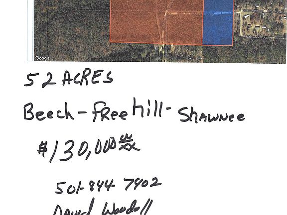 Approx. 52 Acres close to Degray Lake..perfect for development with all the road frontage available. Also good deer camp or private get away! Small growth timber of 12-15 year age on land. Kimzey Water available. CASH PRICE. Call or text David Woodall 501-844-7402