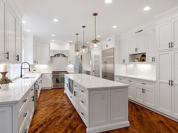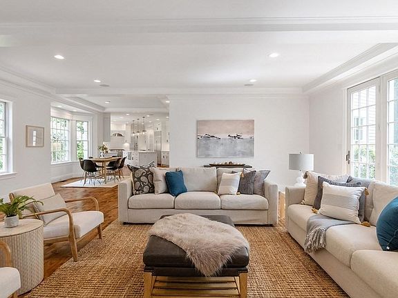 Abutting 27 pastoral acres of conservation land, this naturally sunlit and completely renovated home has a sophisticated neutral palette creating a transitional aesthetic throughout. An eat-in chef's kitchen with open concept to the family room and two brick patios blends seamlessly for ideal space to relax or entertain. The centrally located home office or homework nook provides main level work space while being tucked away for privacy. A first floor master suite captures sunsets with private space for an additional home office, study, library, or sitting area. Upstairs there are four bedrooms with direct access to a gym or studio space. A large lower level with kitchenette provides endless options for a game room, music studio, media room, or wellness spa. Additionally, storage for luggage, pantry items, a wine room, and seasonal decor with a separate entrance to the garage add to the conveniences and flexibility of this new home.