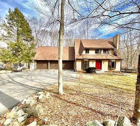 Eye catching custom 4-bedroom cape home with distinguished contemporary accents, setting this home apart from the rest! The attached oversized 3 car garage is a rare find, with additional storage in the lower level will make a great space for projects in addition to the full walk out basement. Upon entering to the right, one will embrace the lovely living room with fireplace & plenty of windows allowing natural lighting to nature. The plan is open to the dining area to the back of the house of which opens to the kitchen. The kitchen is equipped with stainless appliances & a propane oven range for the gourmet at heart, nice Corian style counter tops & plenty of cabinetry for storage. The laundry area is off the kitchen with access to the garage. A first-floor bedroom to the left of the entrance could be used as a home office or den. Upstairs to the right is the spacious master bedroom suite witha full bath, cathedral ceilings & a skylight. Two more spacious bedrooms on the second floor & an additional full bath. Newer furnace, generator hook up & central air. A sanctuary in itself on over 5 acres of private woodland allowing an abundance of nature and tranquil expressions. The walk out basement is framed with windows on two walls which would make a nice addition! beautifully built oversized deck to embrace the country side back yard views. Plenty of additional outbuilding space for garden equipment or farm animals. Chicken coop is included! Paved driveway & fenced side yard.
