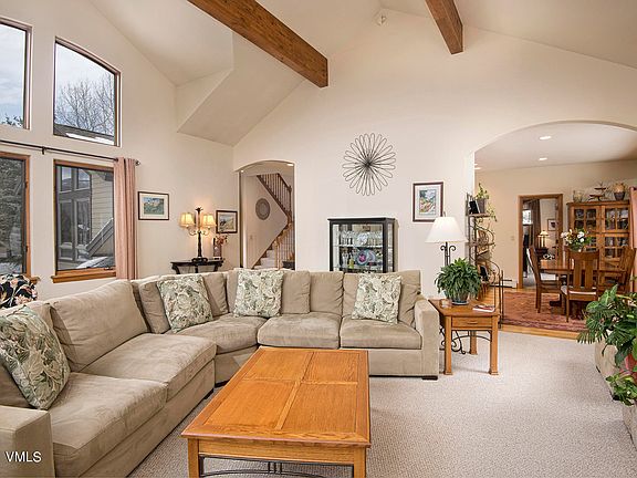 In prime condition sits this 3 bedroom plus den duplex at the end of a cul-de-sac. Whether entertaining or needing additional space for a large family this layout provides it all! Wood beams, views, vaulted ceilings and an abundance of sunshine fill every inch of the home. Master bedroom, open living room, kitchen, dining and patio all access the same main level. Guest bedrooms/offices share the 3rd floor each with vaulted ceilings and their own natural lighting. Den with an adjacent 3/4 bath lives as a 4th bedroom, office or exercise space. Spend the day in your backyard easily accessed from the kitchen or master bedroom. There is no shortage of storage (approx 250+ sq. ft) in addition to the 2 car garage.Pool, gym and tennis courts all close by at the Homestead Court Club included in your HOA dues. Riverwalk, shopping and Edwards restaurants just a short drive away.