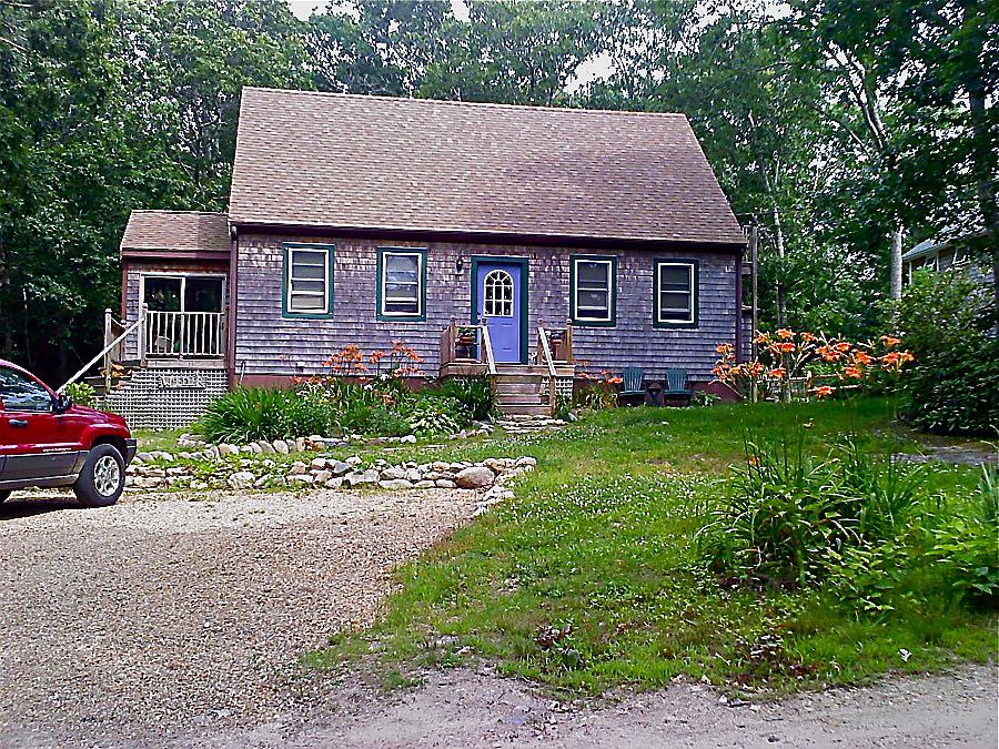 Single Family Home for sale by owner in Tisbury, MA 02568. This delightful, expanded Cape style home sits on a wooded lot with gravel drive, stone path, wood decks and perennial gardens. Quietly positioned away from traffic on a dead-end road, yet within walking distance of town, parks, beaches, harbor and ferries. The first floor has a newly renovated kitchen w/formica countertop, bright and sunny breakfast nook, large living room, full bath, bedroom and den. The second floor has a full bath with two more bedrooms one with separate entrance. The septic system is designed for a four bedroom house.