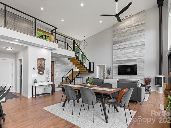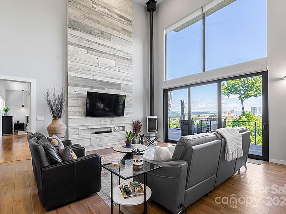 Skyline Serenity exudes modern luxury and boasts one of the best backdrops in the Eastern US -- 180 degree sunset views of the Blue Ridge Mountains juxtaposed with the twinkling lights from the eclectic city of Asheville. This visually stunning, Green-Certified home is an urban oasis where the 20’ soaring ceilings and triple slider doors remove the distinction between indoors and out. The Brazilian Tigerwood deck, floating heated plunge pool and spa are the foreground to the unbelievable skyline and mountain background. Host parties and entertain with ease in this “Smart” home (features attached to MLS) fortified with 23 tons of steel. Find space for every purpose: a flex space perfect for home office, yoga or artistic endeavors, a two car garage, multiple bedrooms with views and en-suite baths, a hardscape backyard and lavish four season living. Live above it all yet moments to downtown Asheville.