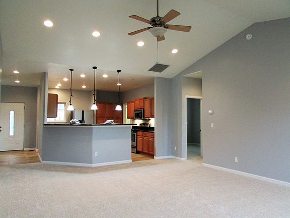 The minute that you step in the front door you will fall in love with the open concept floorplan and soaring ceilings. The well appointed kitchen features tons of cabinetry, lots of counter top workspace and a breakfast bar. A formal dining room and two guest rooms are found in this perfectly flowing floorplan. The oversized master suite with an attached bath and walk in closet is the perfect place to relax and escape it all. There is also an attached two car garage for additional storage. All this is perfectly situated on a lovely maintenance free lot with beautiful views and magical sunsets. Just one look and you will want to sell the lawnmower, fulfill the dream of living maintenance free and call this home!