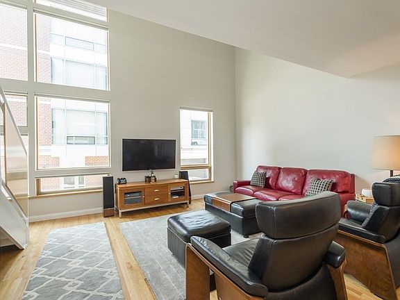 Loft inspired contemporary duplex located where South Boston meets The Seaport district. Incredibly central with easy access to public transportation . Soaring 17 Foot ceilings enhance the open concept living /dining/kitchen floor. Modern kitchen with custom cabinetry and stainless appliances. Direct access from kitchen to private deck. Ascend open stairway to the two bedrooms upstairs. Master bedroom has ensuite bathroom. Hardwood flooring throughout. One full garage parking space with easy access to apartment. Professionally managed and high owner occupancy. Sonos speakers and 3 wall mounted televisions included.