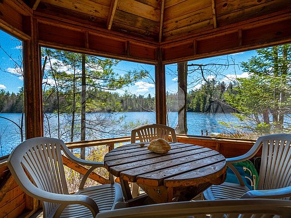 Affordable year round Waterfront with TWO lots and low taxes. Very private wooded setting with a log home offering cathedral ceilings, screened porch and year round living. The second, two story building was built in 2008 as an Art studio and garage with a deck. The log cabin is fully insulated and has three sources of heat which are Elec. Baseboard a Jotul woodstove and Rinnai propane heater. There is a drilled well, septic, underground electric & phone lines and Generator hook ups plus a storage shed for wood . Bass lake is a non motorized body of water that offers great swimming from the two docks & tranquil setting for boating, fishing, biking, hiking & winter sports such as snowshoeing, cross country skiing & miles & miles of snowmobiling. Loon Lake Mountain is just down the road and the ADK Park offers endless hiking, canoeing and outdoor activities.the property comes fully furnished and has a Gazebo at the shore for relaxing and watching the Loons. 2020-07-09