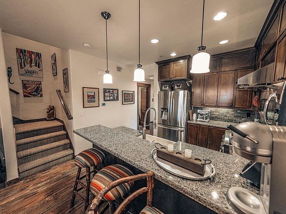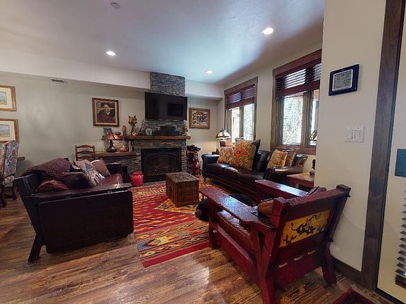 Experience the outdoor lifestyle in the luxurious cabin couture of this stunning turn-key 1,800 sq ft townhome located in one of the most sought-after neighborhoods in town. This recently updated residence offers a desirable 3-story floor plan with a separate bedroom and bathroom on each level and all new floors throughout. The Master en suite boasts engaging views of the surrounding forest while nestled upon the handmade bedroom set. Attached is a private bathroom with double sinks along with a separate shower and soaking tub. Chefs will love the heated floor in the premium open kitchen that’s equipped with all the amenities such as an oversized Monogram stove, and an expanded farmhouse sink. Adding to the Chef’s collection is a Genesis BBQ out on the spacious covered deck for those Bluesapalooza-type days when cheeseburgers and live music are on the menu while enjoying performances in private from only a hundred yards away sitting comfortably in your handmade rocking chairs. The middle floor boasts a large open floor plan with a cozy fireplace and a 300-year-old dining table with seating for 9 lit up by a modern version of the hand-made elk antler lighting. Located on the Sierra golf course, there aren’t noisy neighbors near this unit, wake up to the sounds of the birds of the woods in the large downstairs guest room that feels like another Master but with a 14-foot ceiling and a private bathroom and patio entrance. Enjoy your morning coffee on the lower patio while appreciating the warmth of the fire pit and maybe catching a glimpse of a sleepy bear rolling on the greens. Parking consists of an attached 1-car garage and an additional owner space at the covered carport. No traffic exists here since it’s a privately owned dead-end road. This is a very comfortable and welcoming home where you can relax and enjoy the serenity of the mountains with that touch of luxury you don’t find very often at this price.