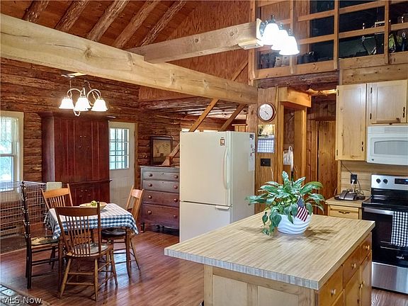 Enjoy country living in this beautiful, custom-built 2,350 sq. ft. log cabin privately positioned on a 90-acre private treed lot featuring walking paths, a creek, wetland/pond, and hunting trails with high-hides. Solid cabin built in 1996 with 9” logs. Inside, the cozy cabin boasts open concept floor plan with vaulted ceilings and large loft that overlooks the kitchen and dining room. Family living includes living room, family room, 3 bedrooms, and 2 full baths. Large windows allow plenty of light! Enjoy the beautiful serene view of the grand estate on the covered front porch. Full, walk-out basement, allows plenty of room for storage. House runs on propane for heat and air conditioning, plus two wood-burning stoves. Generac generator provides security as back-up for the entire house. Detached 6-car garage has two electric garage doors. Large pole barn offers 1,350 sq. ft. of additional storage. Security system, Dish Satellite, WiFi.