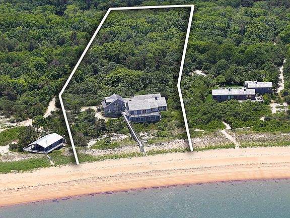 Large shingled beach house directly on Gardiner's Bay. Exceptional location in the Devon Colony with magnificent views and a fine, sandy beach. Perfect for sailing, paddle boarding and swimming, this relaxed and serene setting is one-of-a kind. The two-story house offers eight bedrooms, eight baths, multiple living rooms, dining room, chef's kitchen and screened-in porch. Four-car garage and storage area for boats and bicycles. Situated on 4.74 acres +/- with 200' +/- bay frontage, this is a unique offering.