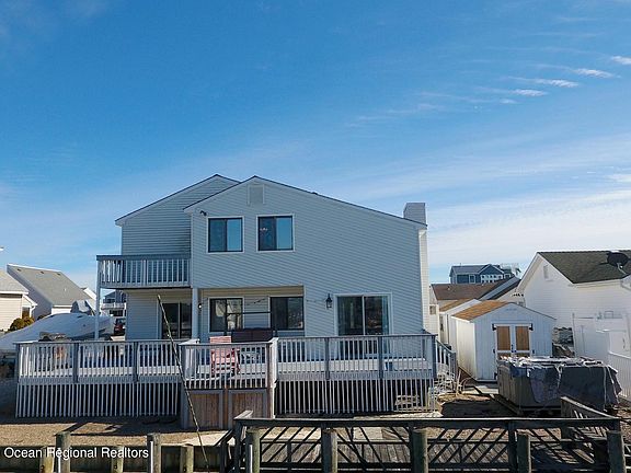 Waterfront home in prestigious East Point section of Beach Haven West - An expanded living Windjammer Model with 60' of frontage with an expansive deck & dock. Open floor plan, cathedral ceilings with lots of natural light, new vinyl hardwood floors, well fitted for entertaining in and out. Updated kitchen with granite countertops, stainless steel appliances, and attractive cabinetry. Easy living plenty of room for all. Four bedrooms with a master suite featuring a private balcony, full bath and walk-in closet. Second floor with two more bedrooms and full bath. There is an additional first floor 1/2 bath. The fourth bedroom, first floor, seconds as an office, TV room or rec room. New paint and carpet throughout. New ceiling fans and lighting. A boater's delight minutes to