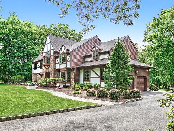 This stately Tudor residence on 1.8 scenic acres in Tewksbury's tranquil Fox Fell community sits at the top of a mountain on a level, partially wooded lot. The park-like setting is enhanced by gorgeous landscaping and is approached by a paved drive edged in Belgian block. Beautifully maintained and in immaculate condition, there is an effortless flow throughout the main floor which includes formal living and dining rooms with large windows, a stylish kitchen, charming family room with fireplace and an impressive library. Opening from a set of French doors in the living room, the two-story cherry-paneled library features a fireplace and a staircase to the wall of bookshelves, creating an ideal remote work environment. The eat-in kitchen has a built-in Sub-Zero refrigerator and separate Sub-Zero freezer, stainless steel General Electric Monogram double wall ovens, and richly-toned custom cherry cabinets. Bright and sunny, the flowing floor plan offers four bedrooms and two-and-one-half baths. Numerous upgrades include a GAF designer roof, Hardieboard siding, Trex Transcend deck, Carrier high-efficiency natural gas furnaces and Carrier high efficiency central air conditioners with a full-house Generac generator. On the second floor, a gracious owners' suite provides a sitting room with fireplace, two walk-in closets and an expansive bathroom with dual sink vanity, jetted tub and separate shower. Three more generously-sized bedrooms, each with double closets, share another full bath with a double sink vanity. Tewksbury is surrounded by charming villages where gourmet restaurants, organic farm stands, and antique stores abound. The township is known for its estate properties and sophisticated yet low-key lifestyle while still having easy access to major roadways. Interstates 78, 80, and 287, and Routes 202 and 206 are only minutes away.