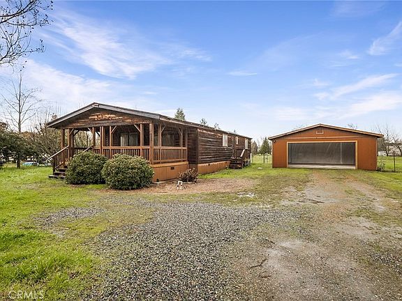 Welcome home to this quaint 3 bedroom, 2 bathroom, 1,344 sq ft home sits on a full 1.05 Acre of land, located in Oroville, CA. You are greeted to a large front yard with a 2 car detached garage and charming wooden exterior. The massive covered front porch provides additional space for you to relax and enjoy the fresh air. Upon entry, you are welcomed to an open and cozy living and kitchen area which allows the space to feel connected, is flexible for design and makes entertaining a breeze. The large windows allow you to have visibility to the outdoors and provide an abundance of natural light throughout the space. The living area was developed with exposed beams, vaulted ceilings, carpet, ceiling fans, and a unique wood stove. The adjacent kitchen is well-equipped with an ample amount of cabinet space, deep storage drawers, cook stove and an island. Walking through the hallway are all of the bedrooms and bathrooms which were intuitively placed to provide maximum privacy and comfort to the home. The master bedroom has its own walk-in closet and a master bathroom with tub shower combo and vanity. An added bonus - there is a separate laundry room with both washer and dryer hookups available and air conditioning throughout the home. The land sits on a lovely family orchard with enough space for extra gardening beds, parking including RV parking, and entertaining guests, children, and pets. You can customize the entire landscape to exactly you like as it's fully fenced in. This home couldn’t be more conveniently located as its a block away from highway 70 which is perfect for commuters and is only a short drive away from Lake Oroville and Feather River. Oroville is rooted in the rich history with stunning landscapes and unique downtown area filled with boutiques, amazing restaurants, numerous activities, and historic buildings. If you enjoy the outdoors, this area has plenty of opportunities for you to fish, hike, walk the trails, boat, paddle, and so much more. This residence truly embodies all of the qualities and conveniences you would want in a new comfortable home.