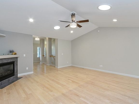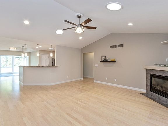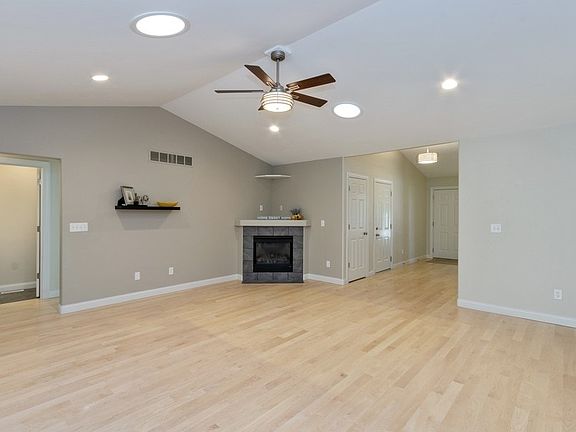 A beautiful foyer entrance welcomes you to this great end-unit condo, with privacy and green space! Main floor living room w/ maple hardwood floors, vaulted ceiling w/ skylights, & corner gas fireplace. Eat-in kitchen with granite, stainless steel appliances, breakfast bar, & pantry opens up to 4-seasons room w/ door to grilling deck. Primary bdrm w/ walk-in closet and bath w/ dual vanities, shower, & whirlpool tub! 2nd bedroom & 1/2 bath on main. Walkout LL family room w/ walk-behind wet bar!
