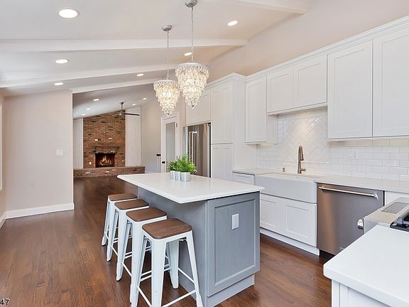 HONEY STOP THE CAR! Unique style "Split Ranch" home. Cathedral Ceilings, Renovated Kitchen & Baths, White shaker cabinets, calcutta quartz counter tops. Blue ribbon schools Watchung Hills High School! Beautiful Sunlit Cul de sac Community in Green brook NJ! Home Boasts Renovated Kitchen w/ 42" White Shaker cabinets, wide fireclay farm sink, Grey center island, custom calcutta quartz counter tops, commercial style stainless steel appliances. addition can be used as playroom or formal dining room. Wood burning fire place. Dark walnut Hardwood floors, new trim & doors. Central A/C with Forced hot Air. The finishes on this property are amazing! LED lighting to save on energy costs. Large flat 100x150 lot, perfect for pool. Blue ribbon schools! Watchung Hills High School - Home NOT in flood zone. Fast Close Avail