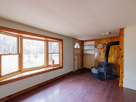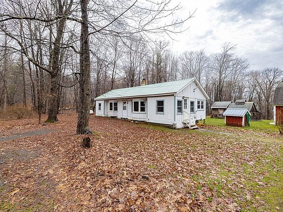 Endless opportunities on this 1.5 acre Williamsburg property! Bungalow style single floor living situated on a wooded private lot. Entering into cozy family room finished with wood floors, a wood burning stove, and large picture windows flooding the room with light. This is the perfect space to entertain. Continuing through the house, there is a large eat-in kitchen with a beautiful picture window with lots of natural light. Off of the kitchen is a laundry/mudroom.To complete the house are two large bedrooms and a recently updated full bathroom. Outside offers multiple barns, and an acre and a half of wooded land.
