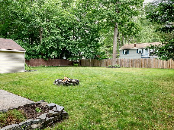 Welcome to 52 Briarwood Road, a charming 3-bedroom, 2-bathroom home located in the highly desirable Thornton Heights neighborhood of South Portland. This well-maintained property features a modern kitchen with stainless steel appliances and ample cabinet and counter space. The inviting living room showcases vaulted ceilings, exposed beams, and a stone fireplace with a wood mantle above the pellet stove. A sliding door opens to the backyard, complete with a flat lawn, privacy fences, gardens, and a stone fire pit.