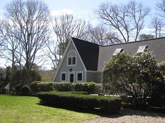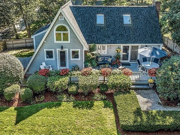 Popular waterfront community and boater's dream . This beautifully renovated expanded A-frame home has first floor primary bedroom, two additional bedrooms, den/office and two full baths. Located in a quiet private area and close to beaches and boat landing on Popponessett Bay and Mashpee River. Featuring a bright, open floor plan with wood floors and a gourmet kitchen. Private front and back decks, and a patio in fenced yard. Many renovations and updates including a new kitchen & bathrooms in 2015 and a new roof, gutters, & skylights in 2019. Brick fireplace, walkout basement, irrigation, outdoor shower and much more. Nicely manicured yard, beautiful gardens, very large driveway with plenty of room for your cars and boat. Close to conservation land with trails and minutes to Route 28, Mashpee Neck Marina, golf course, and Mashpee Commons