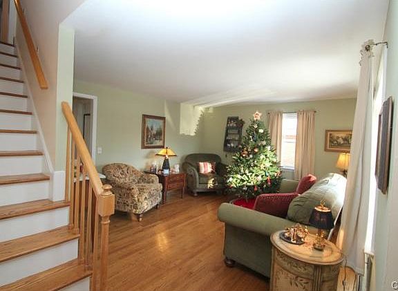 Move right in! Beautifully maintained Cape w/open flr plan. Expansive & inviting new Eat-in-Kitchen w/lrg Breakfast Bar perfect for cooking & entertaining which leads you into the lrg Dining Rm wi/hdwd flrs. All new kitchen appliances, new Armstrong flr, pantry, backsplash & countertops. Freshly painted Living rm & 1st Flr BR have hdwd flrs & a Full Bath on the main flr. 2 additional spacious BRs upstairs w/Full Bath. LL Rec Rm has been updated w/CT Basement Systems walls & sump pump, laundry area & extra storage. Many improvements/updates include new windows, gutters, water heater & deck w/built-in for a grill. Level fenced in back yard is peaceful & quiet. Close to main roads, highways, schools, new train station & shopping. Turnkey home!