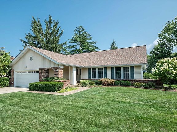 Sprawling ranch home in Francis Howell. A lovely covered front porch greets you as you walk up to the home Inside you are greeted with hardwood floors that run through your open Floor plan. Custom kitchen features upgraded cabinetry, stainless steel appliances, granite countertops, a breakfast bar, and a breakfast room. Inviting hearth room with brick fireplace and sliding doors that lead to a beautiful, fully fenced-level backyard. Living Room is spacious with vaulted ceiling. Primary suite offers an oversized walk-in closet, luxury Master Bath, and sliding doors for private access to the patio and backyard. 2 Secondary bedrooms are spacious and one with laundry hook-ups and an updated full hall bathroom with complete the main level. Basement has a rec room space in lower level is fully updated with new paint and carpeting and 2nd laundry room hook up. HVAC Is newer. All of this just seconds from the Page Ext/364!