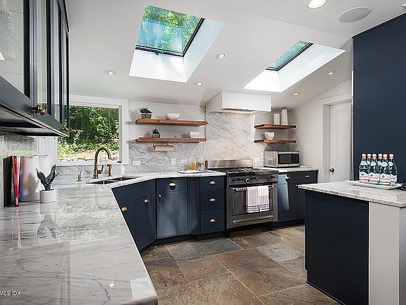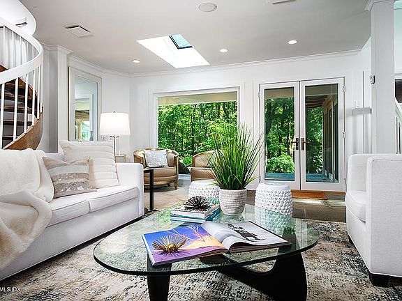 Located just off Round Hill Road, private backcountry renovated Contemporary on 3.7 pastoral acres. Open floor plan and light filled windows open to terrace and 3-exposure screened-in porch. Master bedroom with sliding doors to balcony overlook picturesque, tree-canopied setting. Old stone walls line the beautifully landscaped grounds.