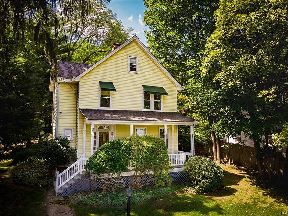 This Colonial Farmhouse circa 1900 sits majestically on a.40 acre lot in historic Tappan. Some features include a wide front porch, great mudroom space, original stained glass, beautiful wood molding, hardwood floors, central and slit a/c and great tile work. The eat-in kitchen is spacious and opens through a mudroom into the expansive back yard. The floor plan lends itself to entertaining with an easy flow between all the rooms. The front of the house faces east drawing in soft, beautiful morning light as well as warm western light in the afternoon. The flat backyard lends itself to many uses and is well-balanced between open space for a garden, and grand mature trees. Detached 2 car garage. Award winning South Orangetown schools. 10 minutes into the Village of Nyack or Piermont.