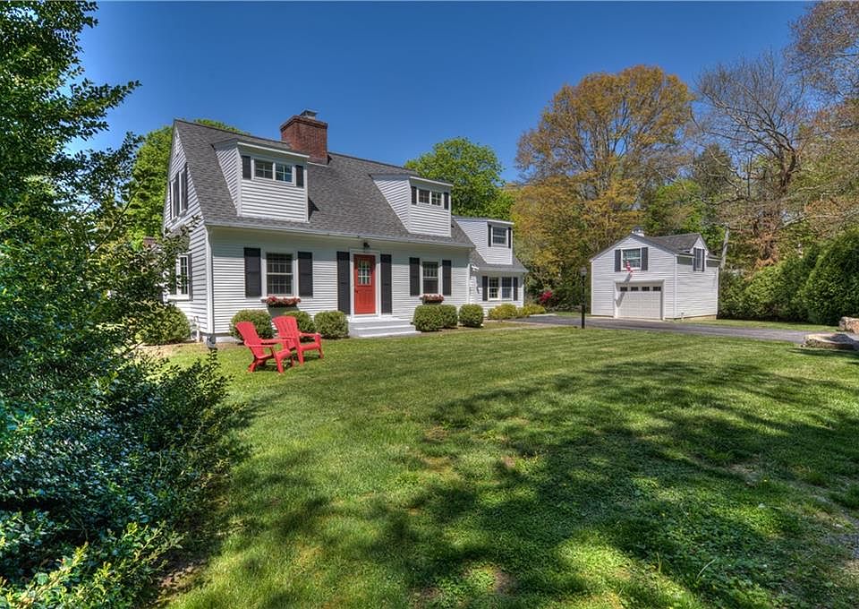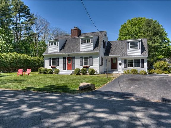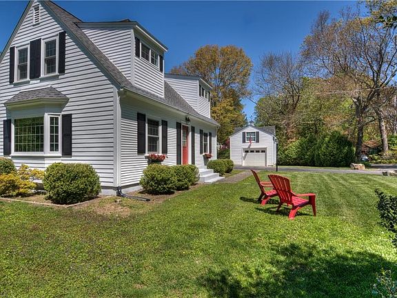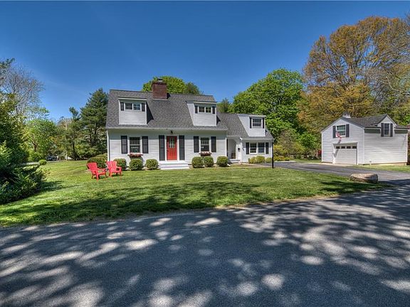 This spacious, sunny, meticulously maintained cape sits on a lovely lot tucked away in a quaint and tranquil neighborhood but is a short ride to all conveniences and close to URI. One-level living is possible with it's first floor bedroom and modern full bath. A welcoming covered entry-way greets you as you enter into the open, stylish mudroom and kitchen, complete with breakfast bar and open dining area. Glass french doors and hardwood floors lead into the expansive living room with bright bay window and cozy wood burning fireplace. A separate dining room provides for additional entertaining and dining space, office, or sitting area. Upstairs is home to two generous bedrooms and a second updated full bath. The annex off the master bedroom is perfect for a reading area, nursery, office or additional sleeping quarters. A newer (2010) over-sized detached garage with finished bonus space above provides ample storage or potential for office, studio or flexible living space. Exterior painted in 2019.