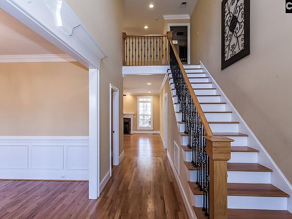 Beautiful executive all brick home in the Peninsula at Lake Carolina is ready for it's new owners. The master suite is located on the main and also a guest bedroom and private bath. Hardwood floors have all been refinished. Butlers pantry leads into the large kitchen with granite countertops, built in microwave and bar that is open to the great room. Beautiful hardwood stairs lead up to the second floor loft area and media room with stadium seating that will remain. Huge bonus room with closet could be 5th bedroom. All bedrooms have walk in closets and ceiling fans. Nice screened porch looks out into the private backyard and leads to the large patio. Gated community with clubhouse, pool, community boat ramp, and tennis courts. Security system, full gutters, irrigation system, home warranty, and termite bond. This home is has a 3 car garage and is located at the end of a cul-de-sac on a 1/2 acre lot.