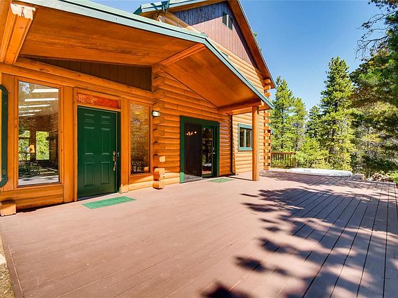 Impressive log home built with imported Douglas Fir. Indoor solarium w/ wall of windows greets you as you walk into the brand new kitchen. Outdoor area adjoins the national forest, ready for entertaining friends or peaceful serenity. Living room boasts a large river rock fireplace w/ vaulted ceilings. Updated master bath is warm w/ heated floors. Solid concrete driveway w/ electricity, ready for an addition. Large shed for toys, plus more. Hiking trails out the back door. 28 minutes to Boulder.