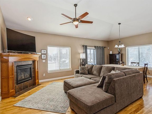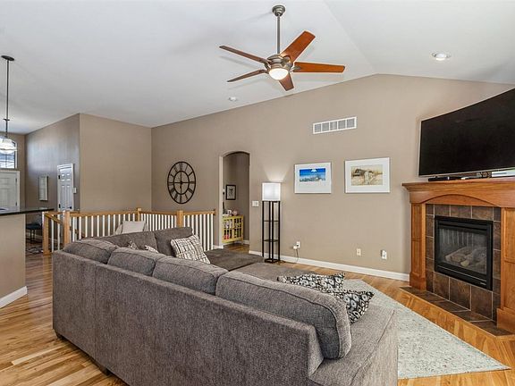 Welcome home to this east side ranch home that checks all the boxes! Foyer entrance and re-finished hardwood floors welcome you. Kitchen with breakfast bar, pantry cabinet, and stainless steel appliances. Living room with corner gas fireplace. Dining area with sliding door that leads out to the screen porch and grilling deck with stairs down to the patio and fenced yard! Primary suite with tray ceiling, walk-in closet, and ensuite bath with dual vanities and whirlpool tub. Laundry room conveniently located near primary suite. Second bedroom on main along with a full hall bath. The walkout lower level family room has great built-ins, wet bar w/ mini refrigerator, two additional bedrooms, and great storage! Attached 3-car garage includes charger for electrical vehicle.
