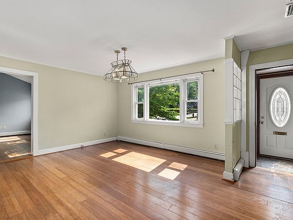 Great Robin Hood Neighborhood located on a corner lot with ample off-street parking. Step into a spacious dining room that seamlessly connects to a kitchen with an island and breakfast bar. The expansive first-floor main bedroom offers generous closet space, abundant natural light, and an en-suite bath with a stand-up shower. Before heading upstairs, relax in the family/living room that overlooks a large, fenced yard. The second floor includes two more generously sized bedrooms, a full bath, and plenty of storage and closet space. The basement features an in-law/au pair apartment with a comfortable bedroom, living room, kitchen (no stove), and full bath—ideal for extended family or a teen! While the house needs some TLC, it comes with a newer heating system and is conveniently located near public transportation, highways, and various shopping options.