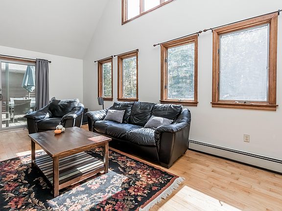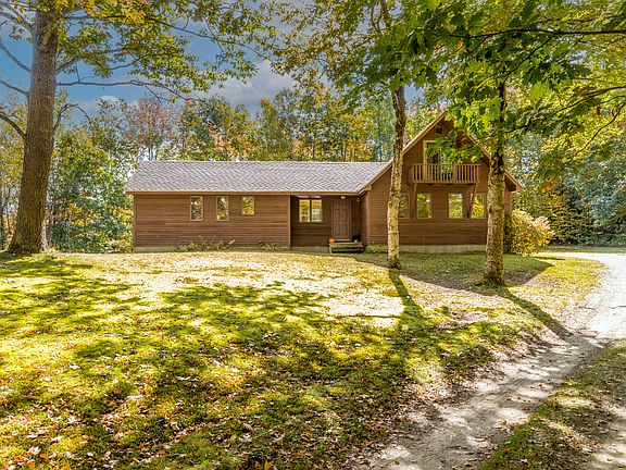 The first floor offers an open concept layout with a cathedral ceiling, stone chimney, and landing overlooking the large living room. A cozy wood stove will help warm you on cold winter nights. Two bedrooms and a bathroom make for easy first floor living. The large foyer between the dining room and bedrooms is drenched in sunlight and offers another sitting area. The upstairs loft bedroom has a private small balcony. Want more space? The basement is partially finished with a large room that could be used as an office or family room. Enjoy the outdoor living space with two slider doors opening to a large deck, and overlooking the sweeping backyard. Take a walk on the quiet street or into the woods on the trails.