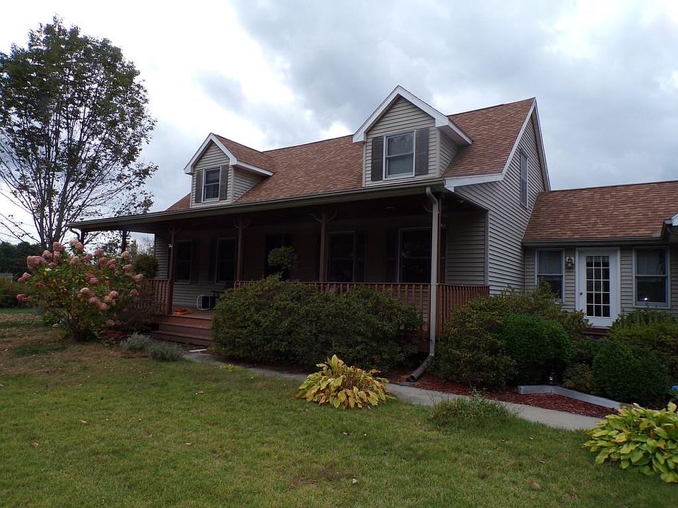 This roomy Cape with a full front porch situated on a quiet road in Hatfield is a great place to live peacefully. Boasting over 3000 square feet on a rural lot, this well-built and well maintained home offers plenty to enjoy inside and out. The first floor breezeway has an oversized closet, and lots of natural light. Step up to the ceramic tiled hall and kitchen, and off to the right is a full bath with new washer/dryer, well appointed kitchen with loads of counter and cabinet space, a hardwood dining room, spacious living room and large den/office. Upstairs are 3 bedrooms, including a HUGE master bedroom with vaulted ceilings and another full bath. The master bedroom has 3 closets including a walk in closet. If that weren't enough, this basement is fully finished, there is an oversized 2 car garage, 1 year old shed and working hot tub. Call today!