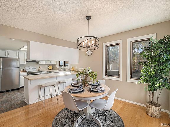 Welcome home to this stunning and bright residence in the highly sought-after Gate N Green Gated community for those aged 55 and above. This home boasts a spacious and well-lit eat-in kitchen with stainless steel appliances and updated dining room and entry lighting, creating a seamless transition into the living room. Enjoy cozy evenings by the fireplace, perfect for those chilly Colorado nights. Additionally, this home offers a private home office or hobby room with new carpeting and a convenient 3/4 bath located just off the hall. There is also a generously sized secondary bedroom, ideal for accommodating guests. The primary bedroom is large enough to accommodate a king-sized bed and features a walk-in closet and a luxurious walk-in spa tub/shower.