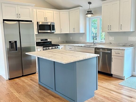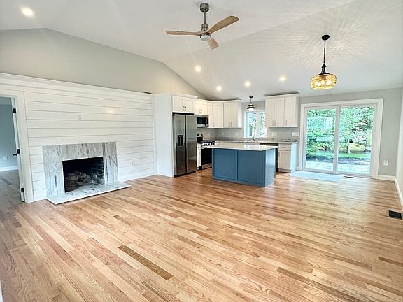 All new! Stunning ranch taken down to the studs. Shows like a brand-new house. Open concept floor plan with vaulted ceilings in main living area with fireplace and whole house hardwood flooring. Beautiful white shaker kitchen with stainless appliances and gray quartzite honed counters. Additional study/office, and 2 guest bedrooms that share a full bath. Laundry on main level. Private master suite with his and hers walk-in closets and large master bath with double vanity. Central AC and maintenance free siding. Coastal decor are the finishing touches that make this house special. Bonus is the large patio with firepit for outside entertaining. All of this, in the best family neighborhood, south of Route 28. One-time association charge to join Great Harbors and enjoy all it has to offer with a small yearly due. Pool, tennis and weekly activities for all members.