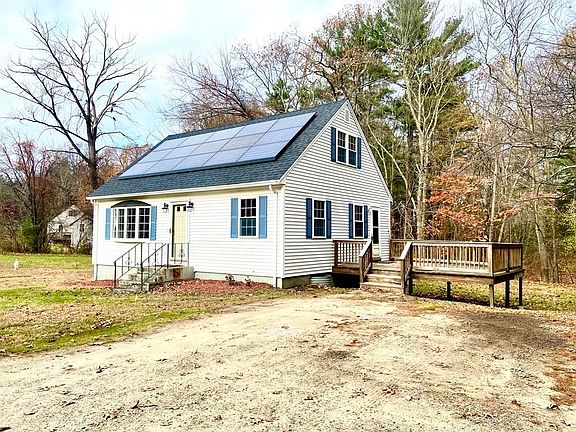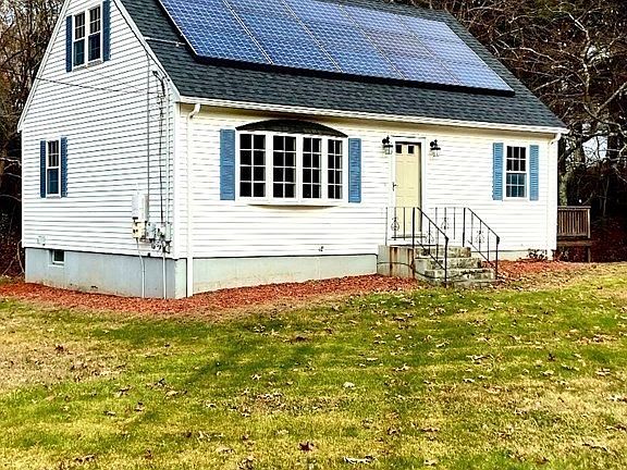 Great Cape Cod style home for sale in Bellingham! This three-bedroom, 1.5 bath home offers many improvements over the years that include windows, hot water tank, new roof (1.5 years old), new three-bedroom septic to be installed, vinyl siding and solar panels (leased). This home sits on an oversized lot measuring .77 acres which allows for plenty of yard and privacy to enjoy. There is a first-floor bedroom, kitchen has stainless steel refrigerator, dishwasher, and gas stove and boasts a large deck out the side door to extend your entertaining space. First floor has wall to wall carpeting (wood underneath). The second floor has two large bedrooms and one small half bathroom. The basement is unfinished and has walk-out access to the back yard. Excellent location being minutes to Franklin with their Commuter Rail and Route 495, as well as Bellingham's downtown with its town common, banking, shopping, restaurants, etc.
