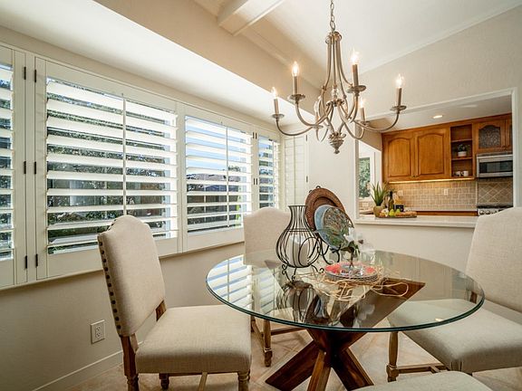 This home sits in one of the most spectacular and private settings in Del mesa with lots of light and million dollar views! This elegantly appointed two bedroom, two bath expanded "B" model is stunning. The completely remodeled kitchen has been opened up to the living/dining room with top-of-the-line stainless appliances, custom cabinetry, Caesarstone countertops and wood floors. Both baths have been beautifully remodeled. The guest bath has custom cabinetry and a walk-in shower with glass surround. The oversized Master bath/dressing area boasts a luxurious soaking tub and shower, gorgeous cabinetry and a wall of custom closets. Plantation shutters, LED lighting, lots of built-ins, radiant heat and a storage room below the house are more of the extras. Come live the fantastic "country-club Del Mesa retirement lifestyle". What's not to love?