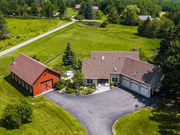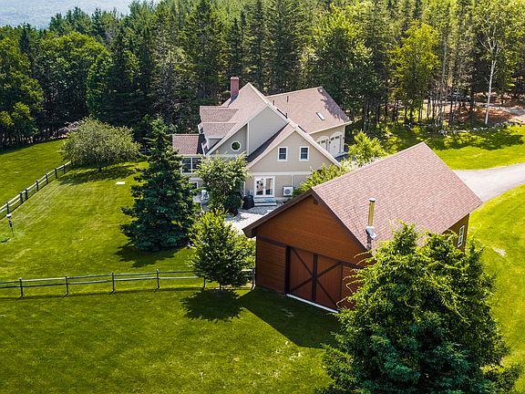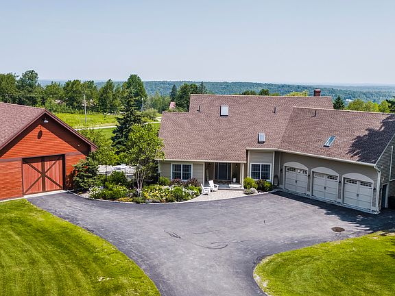 This Mike Temple built Contemporary Chalet is the definition of a Dream Home! Relax and enjoy the serenity of meticulously maintained landscaping on 7+ acres. The scenic views stretch to Mt. Katahdin and you can catch amazing sunrises and sunsets right from the dining room table. The grounds boast walking trails, mature apple trees, abundant wildlife, flower gardens, stone patio, farm pond and so much more. The winding driveway welcomes you home as you pass through the mature pines along the hillside. A Timber Framed barn will be the envy of all of your friends who come to visit. Host extravagant events or plan your next get together. The vaulted foyer invites you to explore all the unique features in this 6,000+ square foot home. The main level has gorgeous hardwood flooring throughout, a granite stone fireplace, sitting room, office and laundry. The custom kitchen has all the elegance and features that you would expect including granite counters, custom cabinetry, walk in pantry, high end appliances, wet bar with pull out freezer and refrigerator and so much more. On the second level, French doors greet you into the Master Bedroom Suite which hosts a cave style shower nearly 12' deep, walk in closet, oversized vanity and new heat pump. Recent upgrades include; 5 new heat pumps, fresh paint throughout, including all exterior painting and trim. Upgraded heating system in the barn, lighted driveway, post and rail fence and much more!