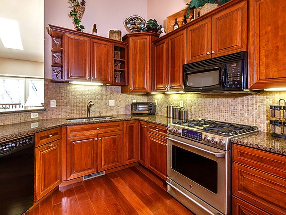 Builder's original, upscale model home w/Cherrywood flrs, vaulted ceilings, skylights & stone FP in Greatroom. Rich Cherry wood cabinetry, granite counters, SS appliances,breakfast bar plus ideal desk nook in kitchen. King-size Master has H/H WIC, 18' bath with 9' double vanity, jetted tub + shower. Large Bay window & WIC in main level guest BR.Total WOW LL features full 2nd kitchen, dining, FamRm w/FP & 2 guest BR/BA. Upper & Lower rear decks, leaded glass front door, ML laundry+community dock!