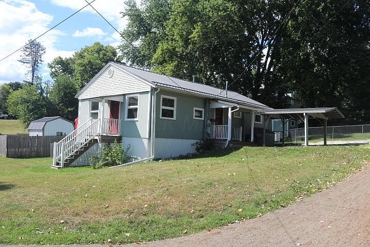 Affordable ranch, main floor laundry (in kitchen), large walk-in shower, kitchen/din combo with gas range and side-by-side refrigerator, 3 bedrooms, forced air gas heat, central air, fresh paint inside and out, newer metal roof, trex decking on 16 x 20 deck and porches, large fenced yard, off street parking, under house storage, shed, newer doors and storm doors. Fredericktown Schools. Immediate possession, Make this your home.