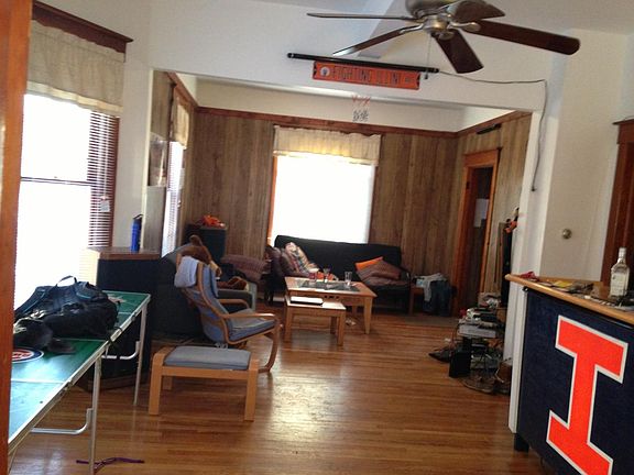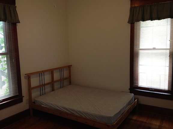 campus house with five bedrooms and two full baths. Also has two living rooms and dining room with eat in kitchen. There is a front porch and the back patio with parking available. Has beautiful wood floors. Tenants responsible for utilities
